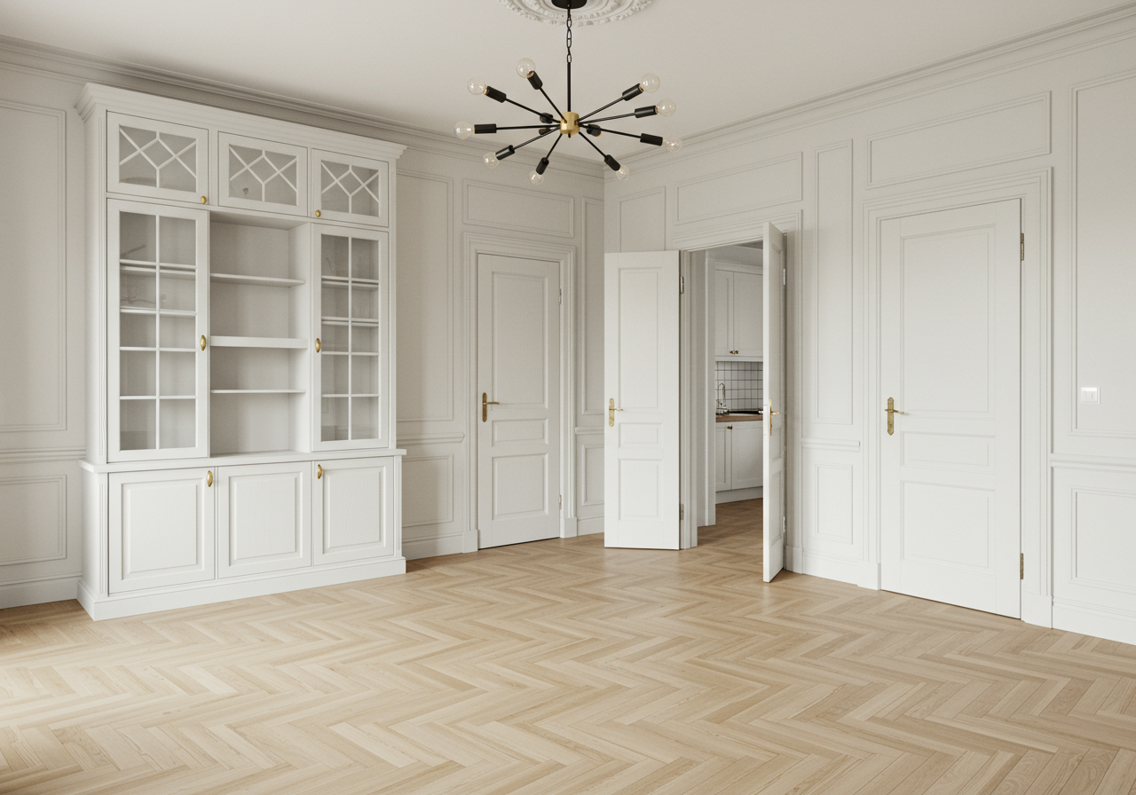 The living room is accented with classic San Francisco moldings, large split-light windows and formal dining room with built-in hutch- both rooms accented with classic San Francisco moldings, large double-hung windows, and mantlepiece.